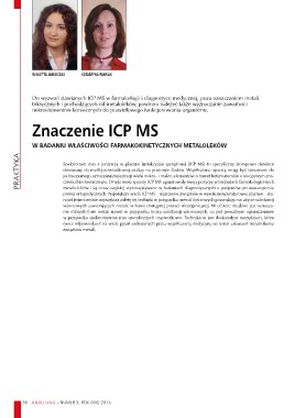 PRAKTYKA Do wyzwań stawianych ICP MS w farmakologii i diagnostyce medycznej, poza oznaczaniem metali